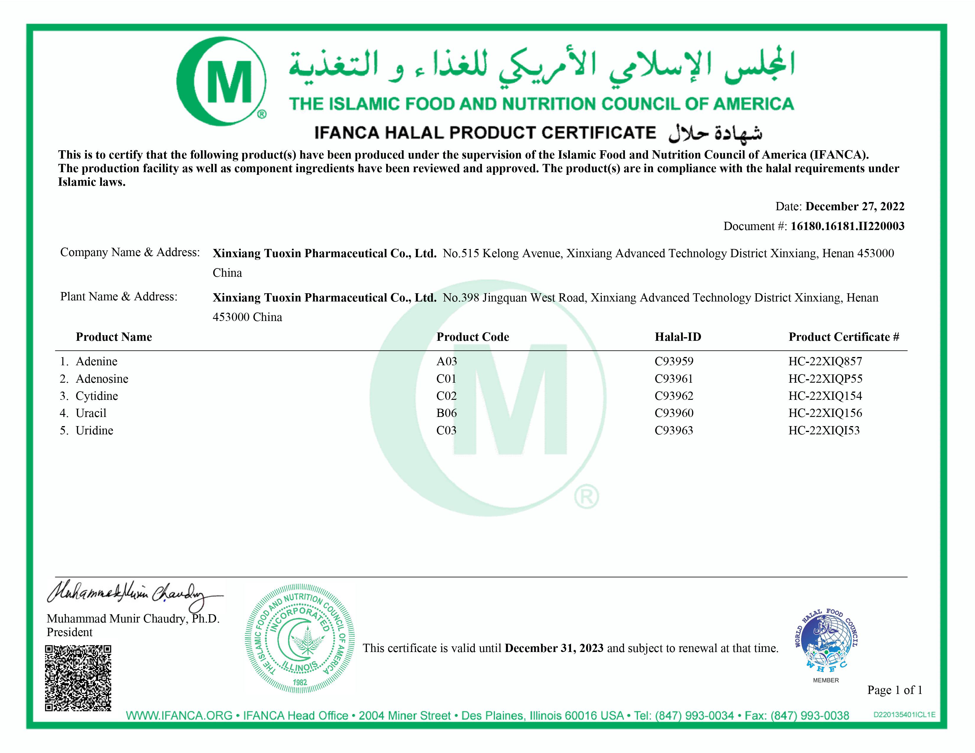 經(jīng)過近二十年的發(fā)展和積累,公司形成了多個系列核苷(酸)類產(chǎn)品,包括5-氟胞嘧啶等醫(yī)藥中間體。